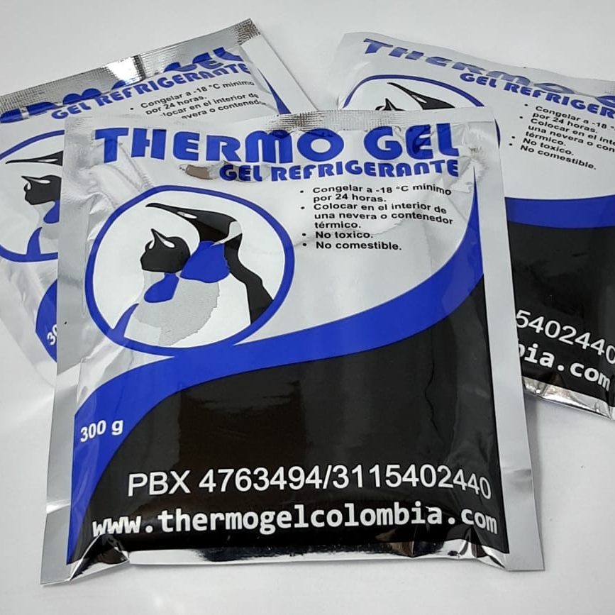 Es un producto tipo gel, envasado en bolsa de polietileno y aluminio con propiedades refrigerantes, re-usable, sintético, no tóxico, económico, usado en la industria farmacéutica, médica, alimenticia, así como en el hogar, para conservar y trasportar en cadena de frío, cualquier producto que necesite refrigeración. Dura varias horas, dependiendo del ambiente, es más eficaz que el hielo.